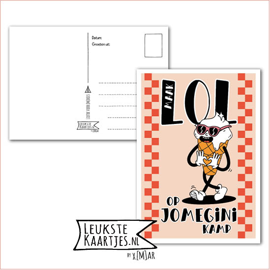 Kaart Op Kamp -> JoMeGiNi – Thuisblijvers No: 76 /6-9 (Maak LOL op JoMeGiNi kamp – IJsje dat hartje maakt)